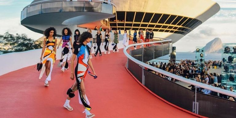 - Entre Maio e Abril, ocorrem os desfiles das coleções Resort (moda praia/cruise), normalmente em locais paradisíacos como Malta ou Bahamas. Você sabia que o desfile de moda Resort da Louis Vuitton de 2017 foi no Rio de Janeiro? O desfile aconteceu no MAC em Niterói.